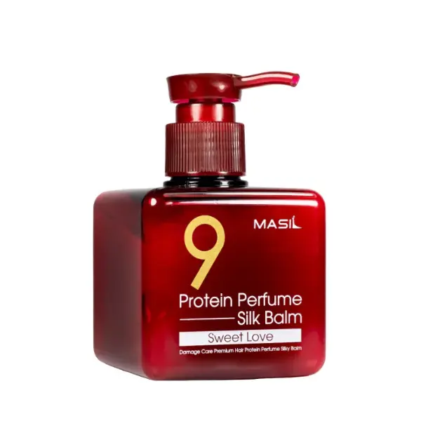 Masil 9 Protein Perfume Silk Balm Sweet Love ,ένα βαθιά θρεπτικό, μεταξένιο balm περιποίησης μαλλιών χωρίς ξέβγαλμα, σχεδιασμένο για να επανορθώνει τις φθορές, να λειαίνει το φριζάρισμα και να αφήνει τα μαλλιά απαλά, λαμπερά και διακριτικά αρωματισμένα.